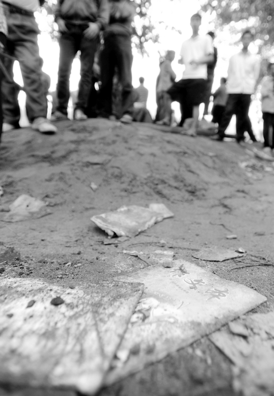 九月十日 沉船水域附近岸边散落着事故当天乘船学生携带的书本 新华社记者 李 尕 摄