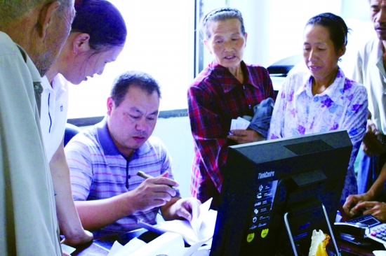 连日来,为了确保农忙时节广大农户能尽快领到农机补贴,永顺县财政局农业股加班加点为广大农户进行发放农机补贴审核工作。图为日前,永顺县灵溪镇艾坪村田金菊正在办理购买碾米机补贴手续。 覃遵奎 姚元金 摄