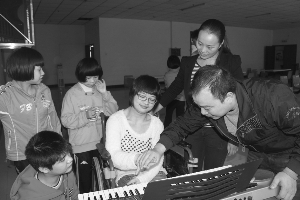 据了解,海韵艺术学校从9月开始,每周四都派几位老师到州福利院里为孤残儿童义务教学,教孩子们学习乐器。虽然这些孩子有的是智障,有的手脚不便,有的有自闭症,学起来相当困难,可海韵艺术学校的老师们却不厌其烦的一遍遍为他们讲解、手把手的指导。海韵学校的姚冉校长表示:就算再辛苦再困难,也要为福利院的孤残儿童们组建一个小乐队,用我们的爱心行动告诉这些被父母遗弃的孩子,社会没有遗弃你们,我们都是你们的亲人。