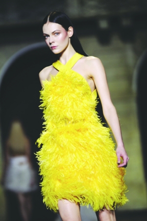 像羽毛这样的东西,总是让人不禁联想起美好的事物来,例如,天空、飞鸟。特别是在沉闷的秋冬,那种特别的轻盈的感觉,仿佛吸走了那些负面的沉重压力一般。这也许是今季的设计师之所以如此钟爱这种材质的原因吧!