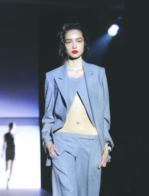 看看那些走在T台上飒爽帅气的美人们,或披着、或随意敞开着那些西装外套的扣子。帅气,带着点男人般的利落,不一定要紧窄合身的外套,越是宽大,越是衬出点不羁的味道在里面。