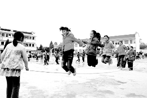 近年来,永顺县芙蓉镇保坪完全小学不仅设立了与在外务工的父母亲联系的“亲情电话”,教师当上了留守学生与家长沟通的“贴心桥梁”,还设立心理卫生咨询服务室,开展了丰富多彩的集体课外活动,把学校建成了深受留守儿童喜爱的“温暖之家”,促进了孩子们健康、快乐地成长。图为11月8日,该校留守学生在开展集体跳绳活动。