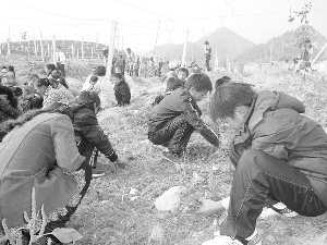 11月16日,永顺县松柏中学八年级(2)班学生正在基地除草。近年来,该校努力开发校本资源,将50亩猕猴桃基地作为第二课堂,让学生在校学技能,毕业后服务社会。