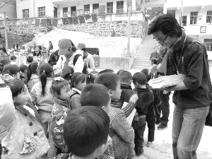 11月22日下午,在吉首市白岩乡白岩中心完小的操场上,湘西民族职业技术学院师生带着捐赠品与完小学生进行了一次爱的碰撞。