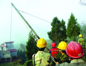 11月25日,泸溪县浦市供电所组织专业技术员采用‘吊拉法’正在为达岚镇五德村‘岩屋口’立水泥电杆。10年前,该村‘岩屋口’仅居住4户人。目前,周边眉毛冲、天堂坡等寨子的农户陆续迁居‘岩屋口’已达27户、140多人,还新建了一所希望小学,当初从毗邻天堂坡寨子牵来的两根照明线供电,已越来越满足不了村民及师生的生产、生活用电需要。浦市供电所想群众之所想、急群众之所急,投入10多万元购买了16根水泥电杆和1台30千伏安的节能变压器,将新牵4根电线专供‘岩屋口’,群众拍手叫好。 吴代清 摄