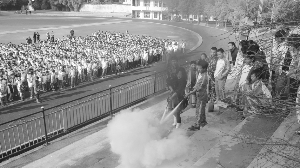 为普及消防安全知识,该校请来市消防中队的宣传员为全校师生进行消防安全宣传教育,教师生们操作灭火器,传授逃生疏散技巧,让消防安全意识扎根在师生们心中。 余 斌 彭 辉 摄
