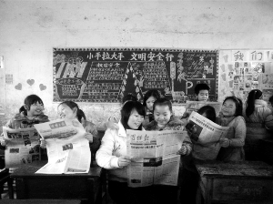 12月13日,永顺县颗砂学校四年级学生正在老师的指导下阅读报纸杂志。今年,该校投资2万余元订购报纸杂志分发到三年级以上各年级,每天规定时间,由教师组织指导学习阅读,有效地培养学生的阅读习惯。