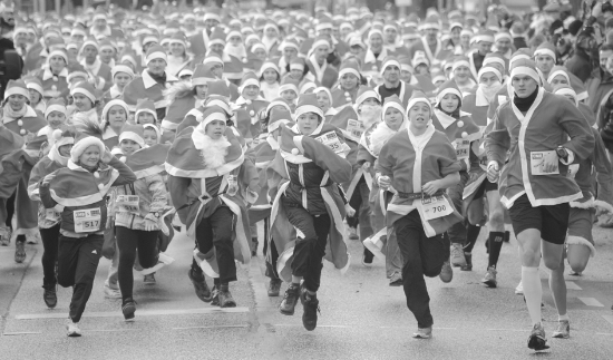 12月4日,在德国米兴多夫,人们装扮成圣诞老人参加第三届“圣诞老人赛跑”。共有700多名选手参加了这场德国最大规模的“制服赛跑”。