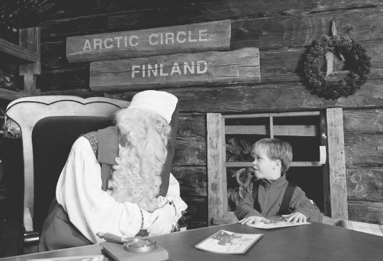 12月14日,在芬兰罗瓦涅米的圣诞老人村,一个男孩与“圣诞老人”谈论他的“愿望清单”。芬兰是圣诞老人的故乡,每年从世界各地来到罗瓦涅米圣诞老人村参观游览的游客多达50万人,特别是在圣诞节前夕,这里更是热闹繁忙。