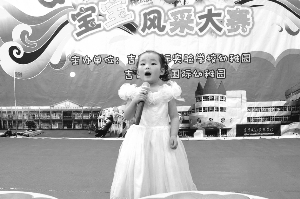 12月21日下午,三岁半的小朋友李珣 洵在舞台上表演节目。当天,吉首市两所幼稚园联合举办了“星耀山城”宝宝风采大赛,比赛有“个性展示”、“体育竞技”、“智力比拼”、“才艺表演”等环节。 欧阳仕君 洪 雄 摄
