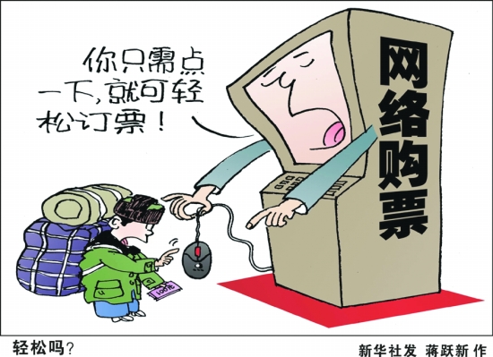 2012年春运即将到来,与往年不同的是,铁路部门全面实行了电话和网络购票,让旅客不出家门就可以买到火车票,也大大减轻了车站购票的人流压力,缓解了车站周边的交通压力。但在实际购票中,旅客也遇到了网络拥堵、购票时间长、显示购票成功但拿不到票等情况,同时一些老人、农民工由于不熟悉网络导致了新的“购票难”问题。
