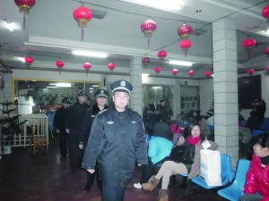 进入春运以来,吉首市公安局治安大队及红旗门派出所抽调部分干警清晨6点钟多开始在吉首汽车总站售票厅、候车室等重点部位采取便衣执勤、武装巡逻等方式,打击偷摸扒窃等违法行为,有效地保障了旅客地出行安全,为春运保驾护航。图为1月13日,民警在吉首汽车总站候车室巡逻。 记者 向培东 通讯员 尹明 摄