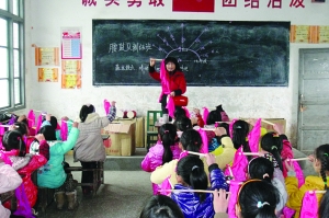 1月16日,龙山县华塘小学教室里,由64名留守儿童组成的腰鼓队,在老师的指导下正进行腰鼓技巧的训练。该校是“乡村少年宫”项目校。在寒假里,学校开设了腰鼓队,乒乓球、篮球、书法、民族体育、口琴、手工等兴趣小组,组织农村留守儿童开展积极健康、丰富多彩的活动,让农村留守儿童过一个有意义的假期。