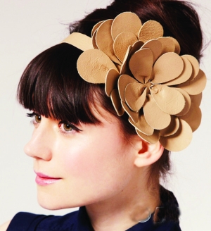 大尺寸+立体感,成为与简单丸子头最速配的抢眼发饰款式之一。比如这款富有层次感和立体感的大尺寸夸张花朵发饰,为极简丸子头增加抢眼亮点,秋冬季节还可以同时加入提升温暖感的皮革元素,效果更出众!