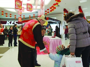 和盛堂商场1月16日晚推出“五子送福”活动,由两位身着唐装的小朋友给顾客送红包,送祝福,让逛商场的顾客意外惊喜。 记者 周 摄