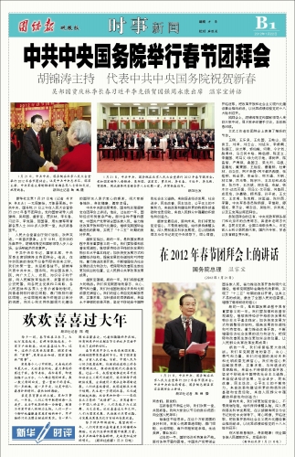 在2012年春节团拜会上的讲话