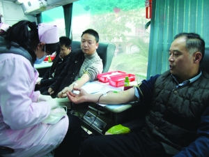 据卫生局相关人员介绍,近期,州内供血紧张,血库库存不足,目前除基本医药用血外,突发性事件用血供应不足,为此州卫生局紧急动员,号召州内医疗卫生系统职工积极参加无偿献血活动,并得到各单位积极响应,截至2月4日,卫生系统共有40人参与献血17000毫升。图为吉首市血液中心的采血车上,州卫生局工作人员正在献血。 记者 周 通讯员 龙永红 摄影报道