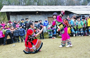 1月30日,在花垣县麻栗场镇溜豆村的春节文化活动中,有3支学生文艺队和2支少年苗鼓队参加了活动。据了解,春节期间,该县学生积极参加群众文化活动,度过了一个欢乐的春节。