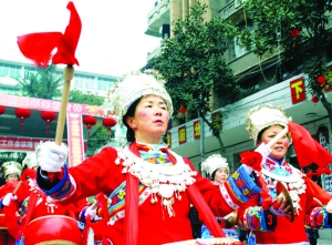 2月3日,农历正月十二,龙山县城举行“金龙闹元宵”传统灯会游行活动,来自城乡的17支花灯队、400余名群众演员参加游行表演,吸引了万余观众。