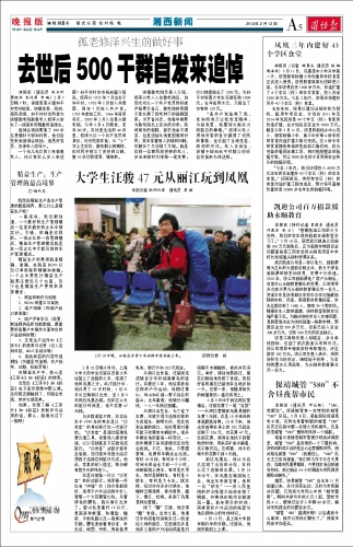 本报记者 欧阳仕君 通讯员 葛 健 2月10日晚8时许,上海大学大四学生汪骏在吉首火车站登上了返程的火车,结束了他的凤凰之行。此次旅行中,他共用了10天时间,1月31日从云南丽江出发,至2月9日抵达凤凰古城。但在这么长的旅行时间里,他只花费47元钱。 与多数游客不同,这位出生于1990年的男生是以“沙发客”的身份进行这一次旅行的。“沙发客”是通过搭乘免费交通工具,依靠他人提供食宿,以少花钱甚至不花钱完成旅行。“沙发客”式旅行新奇且省钱,但汪骏并非因为经济原因才选择这种旅行方式。他说,家里的收入稳定,每月都有数万元的纯收入。 这是汪骏第一次以“沙发客”的形式旅行。他穿着一件红色“冲锋”衣(防水性能很好、适用于户外运动的外衣),背着一个大容量登山包,系着绿色的腰包,就从丽江出发了。登山包里重约15公斤,里面装有帐篷、防潮垫、睡袋、平板电脑以及一套换洗的衣服。腰包里放着身份证、学生证、地图、手机、两块备用电池、银行卡和303元现金。 从丽江出发前,汪骏刚完成骑自行车环绕海南岛的旅行。在最近3年,他经常参加这样的户外运动,他爬过黄山、华山和江浙一带不知名的高山;去年暑假,他骑行川藏线,一人一车抵达西藏。 从丽江出发后,为了省下车费,汪骏不得不选择这样的方式搭车:辨明方向,然后找到出城的路口,站在那里对着可能不收费的车辆招手。很多车辆在他的面前一呼而过,一些车辆停下来问清情况后仍然会拒绝。不过,他说,只要愿意等,免费的车辆总会出现。有时10分钟,有时半个小时,时间长的话也不到一个小时,他都能搭上便车,有时是农用车,有时是越野车,有时是小轿车,有时是大卡车。就这样,经过许许多多次换车,他辗转云南昆明、贵州贵阳、遵义、德江、松桃,来到了凤凰县阿拉营镇。 除了“蹭”交通,他还得“蹭”食宿。出发之前,他通过手机或者网络联系过一些途经之地的朋友,这些朋友多是他在之前的户外活动或者是网络聊天中接触的,彼此并无深交。幸好,得知他要路过,朋友们都给他安排了食宿。有些好客的朋友还留他在当地多玩一天。这样一来,他随身背负的帐篷竟然一直没有用上。 2月9日中午到达阿拉营镇后,汪骏花费了一笔“巨款”———从阿拉营镇到凤凰县城的车费7元钱,这是10天来他的单笔最高消费。10天下来,他出发前带在身上的303元现金还剩下256元,仅花费47元。这些花费,使用在他找不到帮助的时候,用来买矿泉水解渴、买干粮充饥。这样算,他平均每天的花费不到5元钱。 到达凤凰后,他认为自己实现了当初的计划,在网上买了返程的车票。2月10日中午,在凤凰古城游玩之后,他坐车来到吉首。他的一位“驴友”———州人民医院的护士陈蓉又给他安排了晚餐,并带他在乾州古城游玩一圈。前年寒冬的时候,同样爱好户外运动的陈蓉与他在爬华山的时候相识。 1月13日,是上海大学新学期开学的日期。汪骏说,他刚好能赶上上课。 |