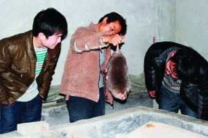 2月20日,姚虎在给乡财政所干部介绍竹鼠的长势。2009年,龙山县贾市乡街上村33岁的土家青年农民姚虎从外地买回38只竹鼠进行养殖,由于不懂技术,一夜之间死得只剩两只。于是他便奔赴怀化等地学习取经,通过实地考察和网络学习,经过3年不断地摸索,现在竹鼠已经发展到200余只,成了他经济收入的主要渠道。