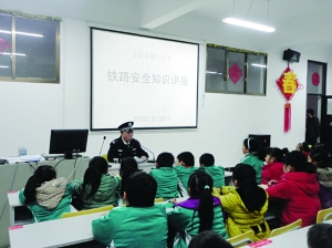 2月21日,吉首市八小组织四年级师生认真听取铁路知识安全讲座。通过讲座宣传,要求师生珍爱生命,遵守铁路交通规则,爱护铁路,保护铁路。