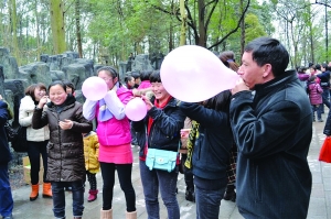3月8日,花垣县国土希望小学举行“三八”妇女节的游园活动。“加油,加油!”参加吹气球比赛的老师们个个都涨红了脸蛋,使出浑身解数就是要将气球吹爆。 黄若琪 摄