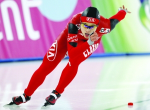 3月9日,于静在比赛中。当日,在国际滑联2011-2012赛季速度滑冰世界杯德国站女子500米首日比赛中,中国选手于静以37秒94的成绩夺得冠军。 新华社/美联