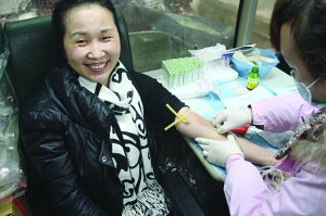 3月22日上午,古丈县政府办工作人员向春艳在无偿献血时面露笑容。今年来,古丈县组织开展了两次无偿献血活动, 456人参与,一共无偿献血14万毫升。15名献血者还做了造血干细胞采样,承诺无偿捐献造血干细胞。 欧阳仕君 向 玮 摄