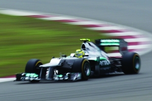 4月14日,罗斯博格在比赛中驾驶着赛车。当日,F1中国站排位赛上海国际赛车场结束。梅赛德斯AMG车队的尼科-罗斯博格以单圈1分35秒121取得杆位,这也是他职业生涯中的第一个杆位。迈凯轮车队的路易斯-汉密尔的和奔驰车队的另一位车手迈克尔-舒马赫分列二三。其中汉密尔顿因更换变速箱,明天将退后5位发车。另四位世界冠军:莱科宁,巴顿,阿隆索和维泰尔,分别排在第5,第6,第9和第11位。