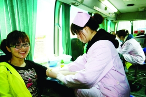 4月11日,永顺县抚志乡九年制学校教师孔丽萍在采血车上献血。近日,永顺县大坝乡、抚志乡等地的40多名干部群众,进一步弘扬雷锋精神,开展了“创先争优、清风廉洁”主题实践活动,义务献血13000多毫升。活动中,抚志乡彭东等人就一次性献血400毫升,充分体现了该县干部群众高尚的思想境界和无私的奉献精神。