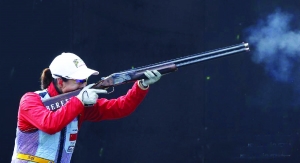 4月20日,中国选手魏宁在比赛中。当日,在国际射联世界杯暨伦敦奥运会测试赛女子飞碟双向决赛中,魏宁在单发决赛中“金枪”制胜,夺得金牌。