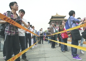 为应对“五一”期间大客流,从4月29日起至5月1日,故宫提前1小时,即早上7点半向观众开放,清场时间仍为下午5点。在端门区域增开临时售票窗口9个,使售票窗口达到25个,并专设旅行社团队售票窗口,以调控售票速度,缓解游客排队购票压力。在此期间,将根据故宫内客流情况,采取现场暂停售票等临时限流措施。通过网上预售票系统购票游客将优先放行进入故宫。
