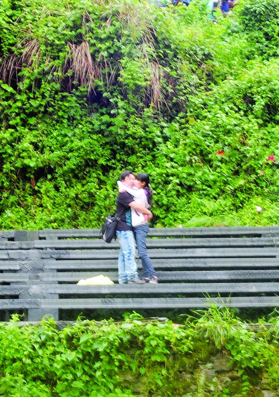 跳花场边,一对情侣紧紧依偎在一起。 田宏贵 摄