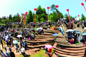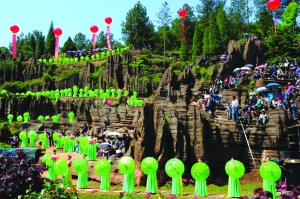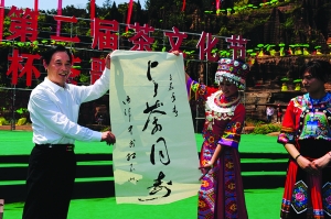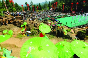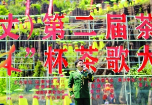 人间四月良辰天,灵秀的古丈红石林景区内,笙歌阵阵,舞步袅娜,从全国400多名参赛者中脱颖而出的10名茶歌高手一展歌喉,角逐2012中国(古丈)第二届茶文化节———“红石林”杯茶歌大赛金奖。茶歌、毛尖、美景,成为当日古丈“三绝”,赢来满堂宾朋喝彩连连,八方来宾举茶言欢,共叙茶谊。