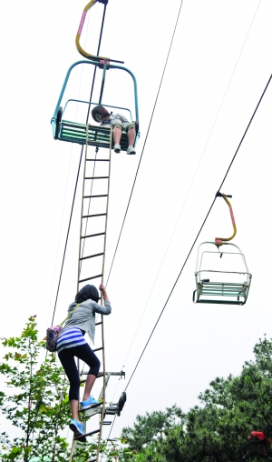 5月26日,被困游客顺着软梯往下爬,顺利脱险。
