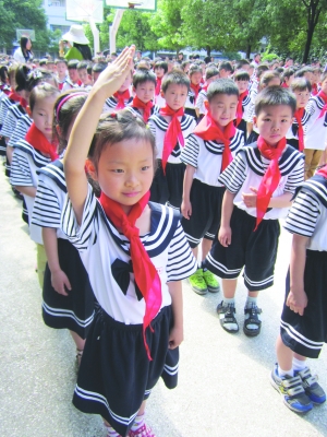 5月30日,和风习习,队旗飘扬,队歌嘹亮, 吉首市一小“庆“六一”、红领巾与文明同行”新队员入队仪式举行。500多名表现优异的同学在嘹亮的队歌声中,佩戴上鲜艳的红领巾,在火红的队旗下庄严宣誓,成为了一名光荣的中国少年先锋队队员。