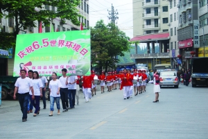 6月5日,保靖县环保局、酉水环保公司同百余名环保志愿者以“绿色消费、你行动了吗?”为主题,“进单位、进乡村、进社区、进学校、进企业、进家庭”,宣传倡导绿色消费,引领群众健康人生,纪念第41个世界环境日。活动以宣传车、宣传牌巡回宣传为主线,发放《环境保护公民读本》200本,宣传画50副,宣传手册2000份。号召每个家庭、每个公民从身边小事做起,让绿色行为贯穿日常生活的方方面面,用实际行动践行绿色消费。图为城区宣传活动。
