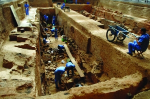 6月9日,考古人员在秦始皇兵马俑博物馆“百戏俑”坑进行发掘。