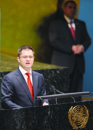 据新华社联合国6月8日电(记者 王雷 林琼)第66届联合国大会8日举行全体会议,以无记名投票方式选举塞尔维亚外长武克·耶雷米奇为第67届联合国大会主席。 第66届联大主席纳赛尔当天在纽约联合国总部主持召开联大全体会议,以无记名投票方式选举出新一届联大主席。塞尔维亚外长耶雷米奇和立陶宛常驻联合国代表采库奥利斯作为候选人参加竞选。结果,耶雷米奇以99票的简单多数当选,采库奥利斯获得85票。 耶雷米奇将在今年9月18日第67届联大开幕时正式上任,接替现任主席、卡塔尔人纳赛尔。 耶雷米奇当选后发表致辞说,他把自己当选联大主席作为送给塞尔维亚人民的礼物。他建议把“以和平方式调解或解决国际争端或事件”作为第67届联大开幕时高级别会议的主题。 耶雷米奇1975年出生于贝尔格莱德,自2007年5月15日起任塞尔维亚共和国外交部长,曾于2007年9月首次访华,2009年8月随同时任塞尔维亚总统塔迪奇访华,2010年4月来华出席上海世博会,并于2011年10月来华出席中塞经贸混委会第9次例会。 |