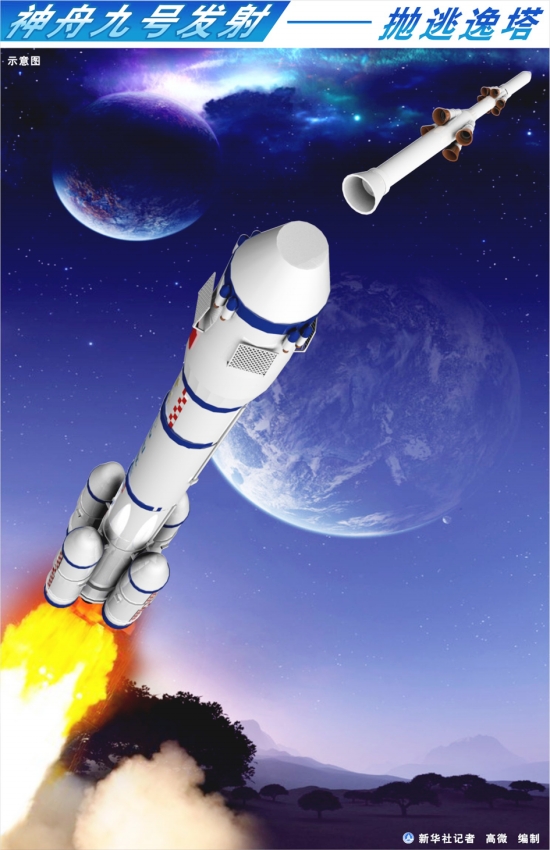 神舟九号发射:抛逃逸塔 新华社记者 高 微 编制