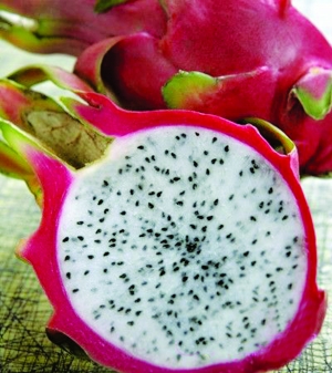 火龙果是一种由南洋引入台湾,再由台湾改良引进海南省及大陆南部广西、广东等地栽培的植物。火龙果因其外表肉质鳞片似蛟龙外鳞而得名。它光洁而巨大的花朵绽放时,飘香四溢,盆栽观赏使人有吉祥之感,所以也称“吉祥果”。火龙果营养丰富、功能独特,它含有一般植物少有的植物性白蛋白及花青素,丰富的维生素和水溶性膳纤维。 (本报综合) 火龙果的营养价值 1、火龙果果实中的花青素含量较高,尤其是红肉的品种。花青素是一种效用明显的抗氧化剂,能有效防止血管硬化,从而可阻止心脏病发作和血凝块形成引起的脑中风;它还能对抗自由基,有效抗衰老;还能提高对脑细胞变性的预防,抑制痴呆症的发生。 2、火龙果中富含一般蔬果中较少有的植物性白蛋白,这种有活性的白蛋白会自动与人体内的重金属离子结合,通过排泄系统排出体外,从而起解毒作用。此外,白蛋白对胃壁还有保护作用。 3、火龙果富含美白皮肤的维生素C及丰富的具有减肥、降低血糖、润肠、预防大肠癌的水溶性膳食纤维。 4、火龙果中的含铁量比一般的水果要高,铁是制造血红蛋白及其它铁质物质不可缺少的元素,摄入适量的铁质还可以预防贫血。 火龙果的保健功效 治疗燥热咳嗽、咳血、颈淋巴结核。茎治腮腺炎,疝气,痈疮肿毒。我们知道,膳食纤维被称为人体的第七营养要素,具有降低血浆胆固醇、改善血糖的生成反应、预防便秘和结肠癌、控制体重、降低雌激素的水平以及解毒作用等功效。 火龙果作为一种低热量、高纤维的水果,其食疗作用就不言而喻了,经常食用火龙果,能降血压、降血脂、润肺、解毒、养颜、明目,对便秘和糖尿病有辅助治疗的作用,低热量、高纤维的火龙果也是那些想减肥养颜的人们最理想的食品,可以防止“都市富贵病”的蔓延。 它具有以下几个独特的功效 1、排毒解毒、保护胃壁; 2、抗衰老、预防脑细胞变性,抑制痴呆症发生; 3、美白皮肤、养颜; 4、减肥、降血糖、润肠滑肠、预防大肠、预防大肠癌发生等。 5、火龙果果实汁多味清甜、除鲜食外,还可酿酒、制罐头、果酱等。花可干制成菜、颜色可提炼食用色素。 火龙果做法: 凉拌山药火龙果 原材料:山药100克、蒜头4粒、火龙果100克、柿子椒2个 调味料:芝麻酱3大匙、糖1大匙、盐1小匙 做法: 1、山药洗净,削皮,泡醋搓洗去黏液,切丝后,下沸水中汆烫后,捞出沥水备用; 2、火龙果去皮,用半匙盐水洗净,切块;蒜头用压泥器压泥;柿子椒切斜片备用: 3、将芝麻酱、糖、半匙盐拌匀,加山药丝、火龙果、柿子椒丝、蒜泥一起拌匀,入冰箱腌渍10分钟即可。 火龙果酸奶汁 原材料:火龙果150克、酸奶1瓶、柠檬1个 做法: 1、火龙果切小块后去皮待用; 2、柠檬去皮后榨成汁; 3、将柠橡汁倒入搅拌器中,再加入火龙果、酸奶拌匀即可。 |