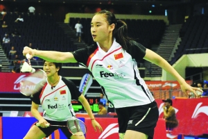 6月23日,中国选手包宜鑫(右)/钟倩欣在比赛中。
