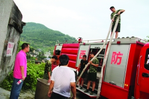 6月28日下午,吉首市消防队装载满满一车自来水不是去救火,而是运到吉首市马颈坳小学将水灌入该校的蓄水池,从而使全校600余师生的生活用水有了保障。