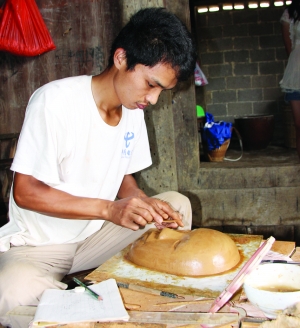 文\本报通讯员 龙银慧 图 \龙恩泽 每个人都有许许多多梦想,有些人梦想成真了,更多的人却一直在为梦想奋斗! 龙黎莎,便是这样的一位有志青年。 去年,听说村里有一位聋哑青年,从小热爱书画,曾在自治州特殊学校学习书画艺术,获得过各级书画大赛奖。因家庭贫困,为照顾年老的母亲,选择了泥塑手艺为个人事业发展的门路。身残志坚,我开始佩服这位青年了。 这位残疾男青年是花垣县团结镇杨家寨村的村民,1983年4月4日出生,毕业于州特殊学校,有绘画和泥雕特长。 近日,我们来到了他家专门去慰问他。第一次到他家,当时没遇到他,却了解到他的生活。他和媳妇又聋又哑。母亲也聋了,只有不满周岁的儿子是个健康人。之前他家是多么红火和幸福,后来因为病魔夺去他父亲的生命,一个幸福红火的家庭就这样萧条下来。 前两个月,我第二次走进他家。一个小型四合院的农家小院,收拾得干干净净,农具摆放的有理有条,依稀见证他们家曾经的红火和幸福。几束调皮的柑橘枝从围墙外探进头来,随风飘扬。一个中等身材的小伙,双手的黄泥,腼腆的笑容,从偏房中走出来。我第一次见到了龙黎莎。 村干部打着手语向他说明我们的来意,他赶忙转过身向正屋走去。我认为是我们这些“不速之客”让他不高兴了。过了一会儿,他从屋里搬出几把凳子,不停地打手势,十分热情地招呼我们坐。他指着自己的双手黄泥(意思是说太脏了,不好意思)。看着我满面的疑惑,他又指小偏房前那堆柴上放着的十来个脸谱,我顿时明白了,原来他正在工作中(他用黄泥巴和上自己制作的玉米浆,然后用这合成的泥倒到模上,制成脸谱)。也许他怕我笑话他,赶紧在手机上打出一句话:“在制作摸索中”。我也把来意向他说明清楚:想看看他的作品。他带着我们上到二楼,然后从床底下取出画板,其中有他自己照镜子时的自画像,龙清泉等许多体育界、文艺界明星也成了他的速画对象。 泥塑艺术是我国一种古老常见的民间艺术。它以泥土为原料,以手工捏制成形。或素或彩,以人物、动物为主。制作方法是在黏土里掺入少许棉花纤维,捣匀后,捏制成各种人物的泥坯,经阴干,打上底粉,再施彩绘。2006年5月20日,泥塑艺术经国务院批准列入第一批国家级非物质文化遗产名录。龙黎莎学习泥塑艺术的初衷是出于生计。但这条道路是很艰难的。 他在纸上写着:“我有色盲,在学校时老师说我色彩画不行,速写画行,墙上那幅画是老师指导的。”我发觉此时想安慰的话是多么的苍白和无力,只好也在纸上写着:“取长补短,你一定会成功的。”他看了,又腼腆地笑了笑,虽然他此时不能用言语表达,但我知道那是充满希望、充满梦想的笑。 那天,从他家出来时,心里有一种说不出的无奈和伤感。觉得自己是那么的无能为力……看到他那样,后来我们曾多次明里暗里用不同方式去帮助他,但我们的力量远远不够。 前几天,电视台要对他作专题采访,由我带路。进门时,他还是和原来的一样热情,那张笑脸让人感觉不到他是一位聋哑青年。这一次我发现他的作品多了许多了,在他那间工作室(偏房)里的一张方桌上摆满了各式人物、动物的泥塑。“捏得太像了!”一位记者说。在一边地上的一块木板上,10多张脸谱,有的上色了,十分形象。没想到才两三个月时间,他就弄出了那么多,那么好的作品来。我有些吃惊。 一旁的村干部给我们介绍,龙黎莎为了摸索泥塑的方法,他看了不少有关书籍,然后自己就边做边想,经过好多次实验才做出质量好些的泥塑作品。说到此,龙黎莎还特意拿出原来质量差的一张脸谱,轻轻往地上一扔,全碎了。我们明白了。村干部还说,龙黎莎制作这批作品,把家里的一床旧棉絮全都扯光当材料了,聋妈妈给我们介绍,儿子为了制作泥塑,把家里能用上的东西都用了。 村干部说,龙黎莎是个十分孝顺的儿子,曾想出去打工,但聋妈妈在家没人照顾,所以他依放弃了外出打工的机会。在家没什么门路,他想来想去,最后决心学习制作泥塑,将作品向外卖出去赚钱养家。为了生活,只要能找钱养家糊口,他不管什么活都做。今年3月份,村里大搞柑橘开发。下苗那天,全村100多人都是妇女和老人参加,就他一个男子汉。几万棵树苗,他坚持下车,十分勤快。看到他太累,大家都示意他休息,而他却默默地做他的。过后,村干部给他发了短信:“你太辛苦了。”他回信说:“为了生活。” 龙黎莎用他的方式告诉我们,他做泥塑爱好也是为了生活,他想把这门手艺学好,并当作他的事业,用来发家致富。他还告诉我们,曾有人来看过他的作品,打算购买他的作品。然而他想让自己的作品做得更好一些再出手。 我们一直在默默地祝福:他选择的这条艰难的泥塑艺术道路一定会成功的。 |