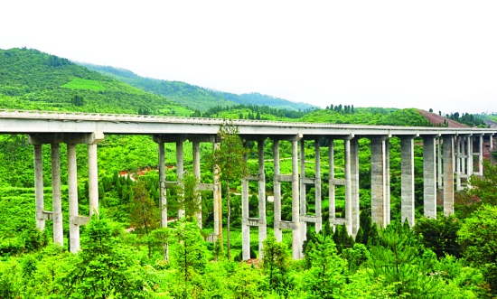 图为6月30日张花高速永顺县抚志特大桥雄姿。该标段的建设方湖南路桥公司,确保质量,狠抓进度,比预计工期提前3个月完成大桥的防护栏和桥面水泥稳定层施工任务。 唐启武 摄