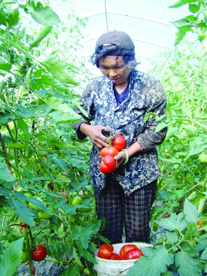 7月3日上午,永顺县吊井乡吊井村500亩大棚蔬菜基地,蔬菜产销大户张权在请民工采摘西红柿。今年,张权种植11个大棚8亩“金石王子”西红柿,每亩产量近4000公斤,按目前当地超市每公斤6元收购价计算,仅此一项收入有望突破20多万元。