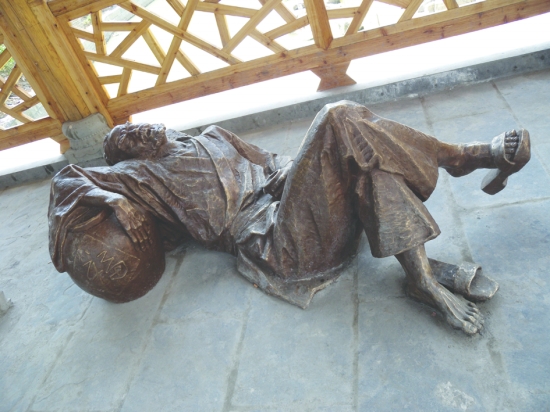 “醉”桥四角上安放的醉汉雕塑之四。