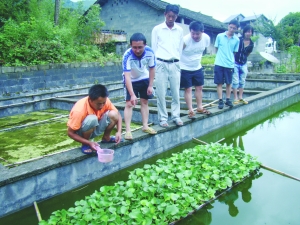 永顺县选派的85名机关干部担任村党支部第一书记,相继驻村蹲点包片,进村入户访民情、听民意、解民忧。图为7月5日,该县毛坝乡五寨村第一书记彭程(左二)正带领年轻党员,来到该村养殖户黄如山(左一)的黄鳝养殖基地了解情况。 吴 华 摄