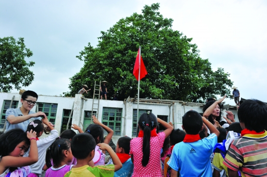 秋子的父母专程从保定赶来,教孩子学会了系红领巾、敬队礼、唱国歌。